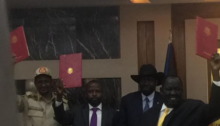 وقد شرف بالحضور سعادة الرئيس سلفاكير ميارديت رئيس حكومة جنوب السودان، ومثل حكومة السودان نائب رئيس المجلس السيادي الفريق محمد حمدان دقلو حميدتي، من جانبه قال الرئيس سلفاكير ان التوقيع جاء بارادة قوية من الطرفين ، وان سلام الشمال يعني سلام الجنوب، الفريق حميدتي قال: التوقيع يؤكد جدية الطرفان في الوصول الى السلام، وانه لاتراجع عن ذلك الى حين اكتمال سلام السودان، والشعب السوداني جدير بأن يعيش في ظل السلام.