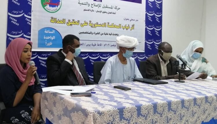 وكشف أمين أمانة العدل وحقوق الإنسان بحزب حركة المستقبل والإصلاح والتنمية هاني تاج السر عزمهم بالحزب على اتباع كافة الإجراءات القانونية لحث الحكومة بتكوين المحكمة بأسرع وقت، وقال في مؤتمر صحفي عن “أثر غياب المحكمة الدستورية على تحقيق العدالة” بطيبة برس أن الحكومة تعمدت عدم تكوين المحكمة بعد أن حرصت على عدم تجديد العمل للقضاة بالمحكمة مما أحدث فارغا دستوريا ساهم في عدم تحقق العدالة فضلا عن انتهاكات حقوق الإنسان .